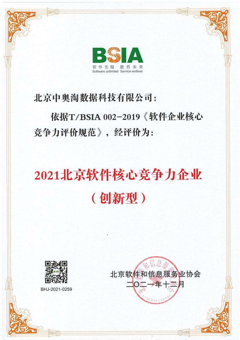 近日,北京軟件和信息服務(wù)業(yè)協(xié)會(huì)第十屆會(huì)員代表大會(huì)上發(fā)布了《2021北京軟件企業(yè)核心競(jìng)爭(zhēng)力評(píng)價(jià)報(bào)告》和2021北京軟件核心競(jìng)爭(zhēng)力企業(yè)名單。北京中奧獲評(píng)“2021北京軟件核心競(jìng)爭(zhēng)力企業(yè)(創(chuàng)新型)”。